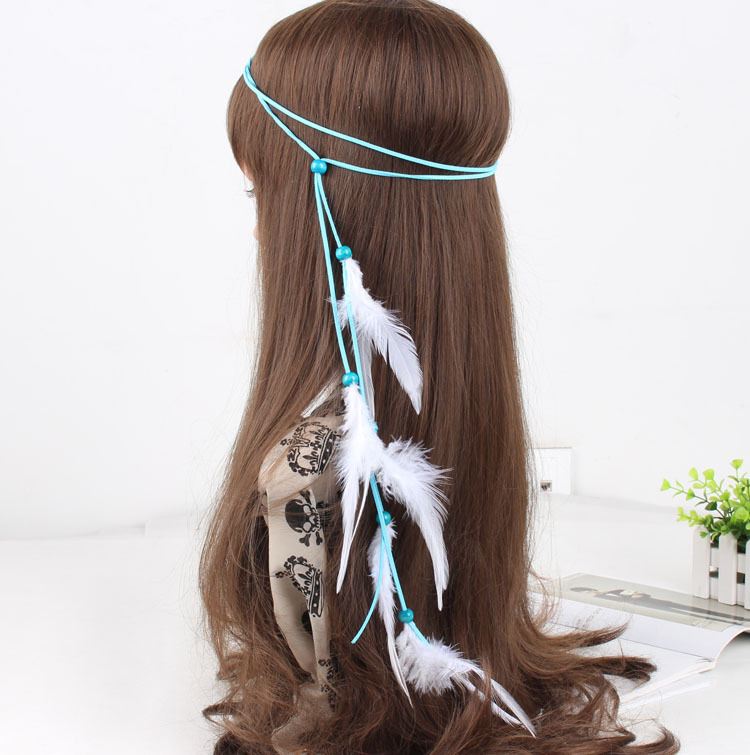 Description: Hand made items color: as picture shows Size : free size Materials: feather, wooded beads, felt braided band Made to order